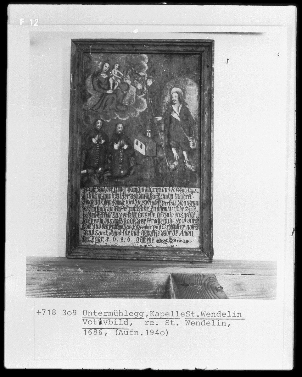 Votivbilder, ab 1684, erinnerten an die Verehrung des Hl. Wendelin in Untermühlegg vom 17. bis ins 19. Jahrhundert - fielen jedoch leider fast alle einem Kunstraub in den 70er Jahren zum Opfer.